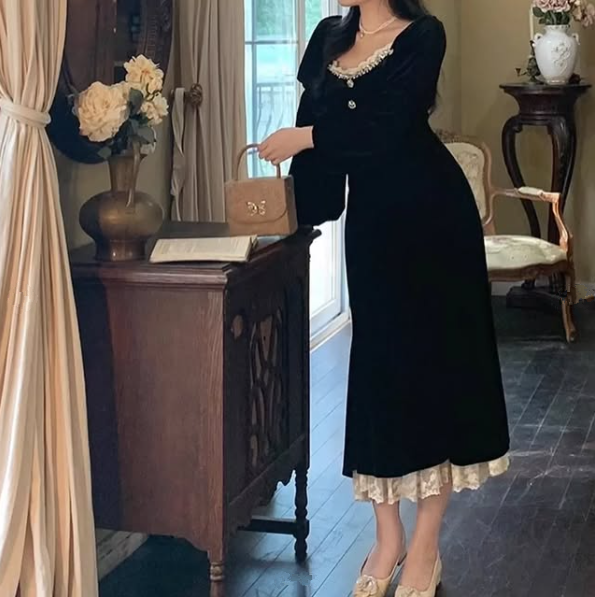 Schwarzes Samt-Ballkleid, schwarzes Abendkleid, formelles Ballkleid, fg7285