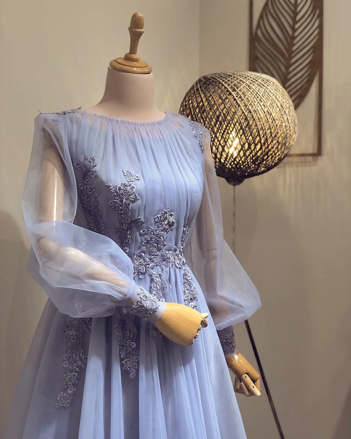 Lilac A-line Prom Dresses Appliques Lace Beading Tulle Long Sleeves Formal Evening Party Gowns fg6674