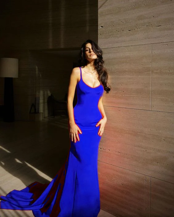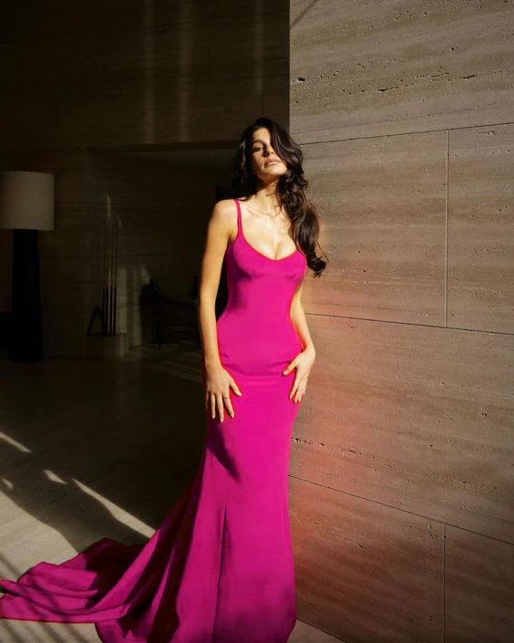 Sexy Mermaid Spaghetti Straps Red Prom Dress Wedding Guest Dresses fg5028