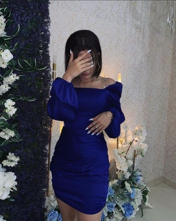 Robe de bal courte bleue pour remise de diplômes, fg4018