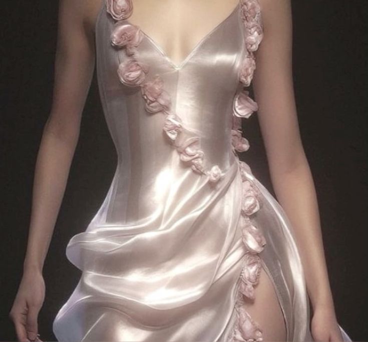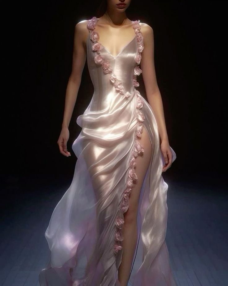 3D Flowers Sexy Long Dress,Pink V Neck Evening Party Dress fg7377