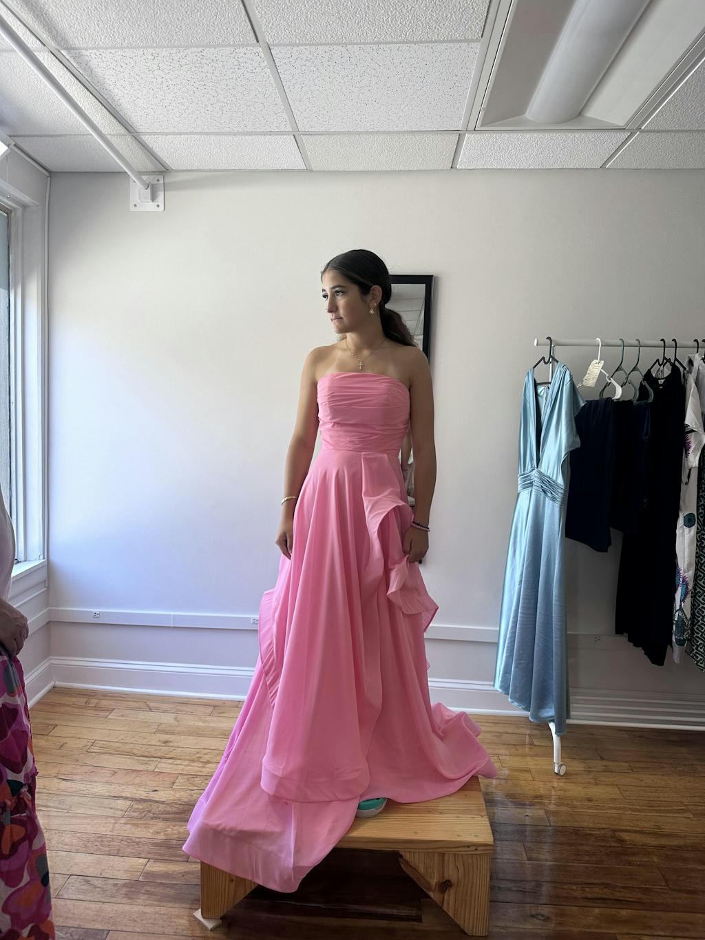 This dress arrived timely and was perfect for my prom! The fit was as described. Such a pretty dress.! I really like it its very comfortible to wear. The material is very good and it is easy to put on. Really pleased with this dress!